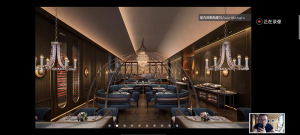 他將自己親自主持設(shè)計(jì)的深圳高端餐飲品牌——都一樂斯項(xiàng)目進(jìn)行講解!從接到項(xiàng)目初期到規(guī)劃設(shè)計(jì),找到設(shè)計(jì)靈感來源,再如何把靈感從抽象到具象落地呈現(xiàn)到項(xiàng)目的整個(gè)過程,向國際設(shè)計(jì)交流會議進(jìn)行講解和展示!他認(rèn)為設(shè)計(jì)師對美會有獨(dú)特的眼光和遠(yuǎn)見,濃縮凝聚成獨(dú)有品味呈現(xiàn)在設(shè)計(jì)作品中!屏幕下,隔空能感受到國際設(shè)計(jì)師對該項(xiàng)目作品頗感興趣和熱情,對設(shè)計(jì)方案贊賞有佳!