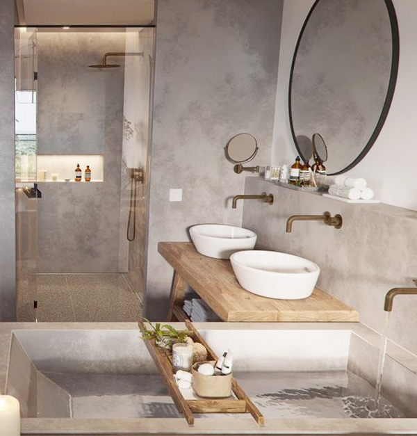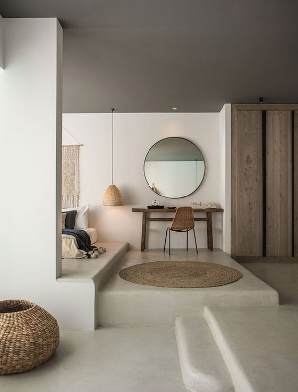 四.對(duì)墻體質(zhì)感的偏愛,注重表現(xiàn)粗狂原始的肌理與舒適細(xì)膩的軟裝配飾對(duì)比。